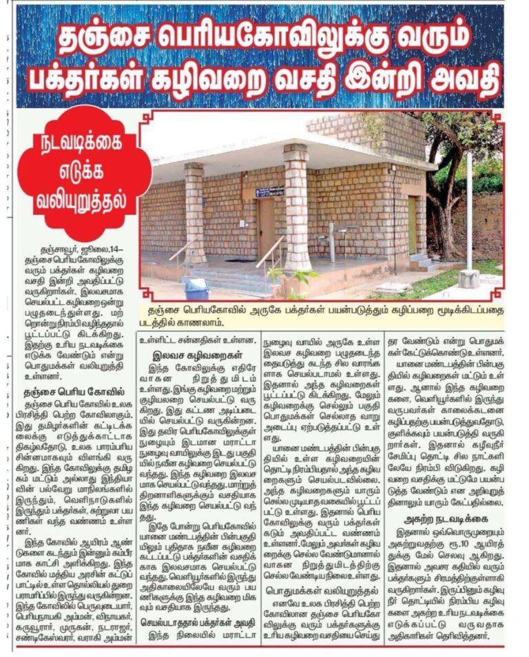 தஞ்சை பெரியகோவில் தினமும் பல்லாயிரம் மக்கள் வந்து செல்லும் இடம்.